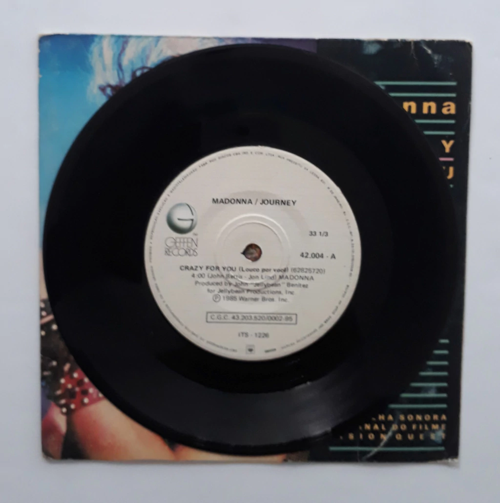 Both artists are stated on the vinyl's labels: Madonna/Journey. Track times slightly differ from other releases: Madonna's Crazy For You is clocked at 4:00 and Journey's Only The Lonely at 4:01. The vinyl plays at 33 1/3 RPM.